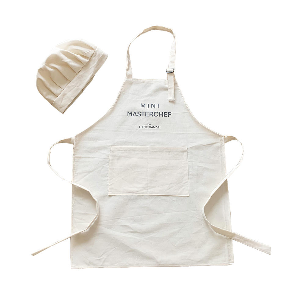 உயர்தர தனிப்பயன் லோகோ காட்டன் கிட்ஸ் அப்ரான்ஸ் மற்றும் செஃப் ஹாட் குழந்தைகள் ஓவியம் சமையல் தொகுப்பு |